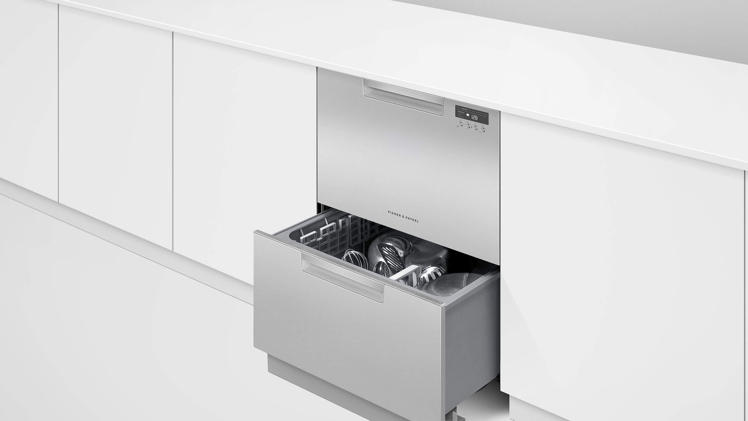 DishDrawer™ 雙抽屜式洗碗機針對現有廚房櫥櫃而設計,具有與傳統洗碗機相當的尺寸,但是具有雙獨立抽屜的優勢,更加方便和符合人體工程學。