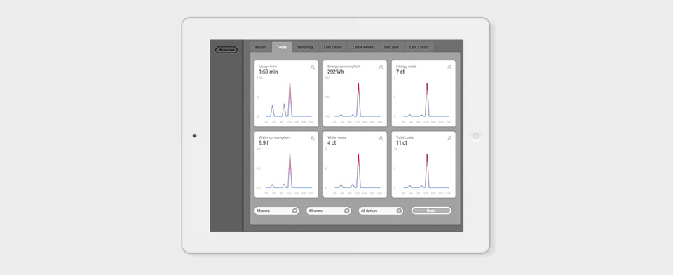 The Smart Control also provides an excellent summary of water usage and energy consumption.Graphical summary of each user’s water and energy usage are always within reach; billing information is also available.