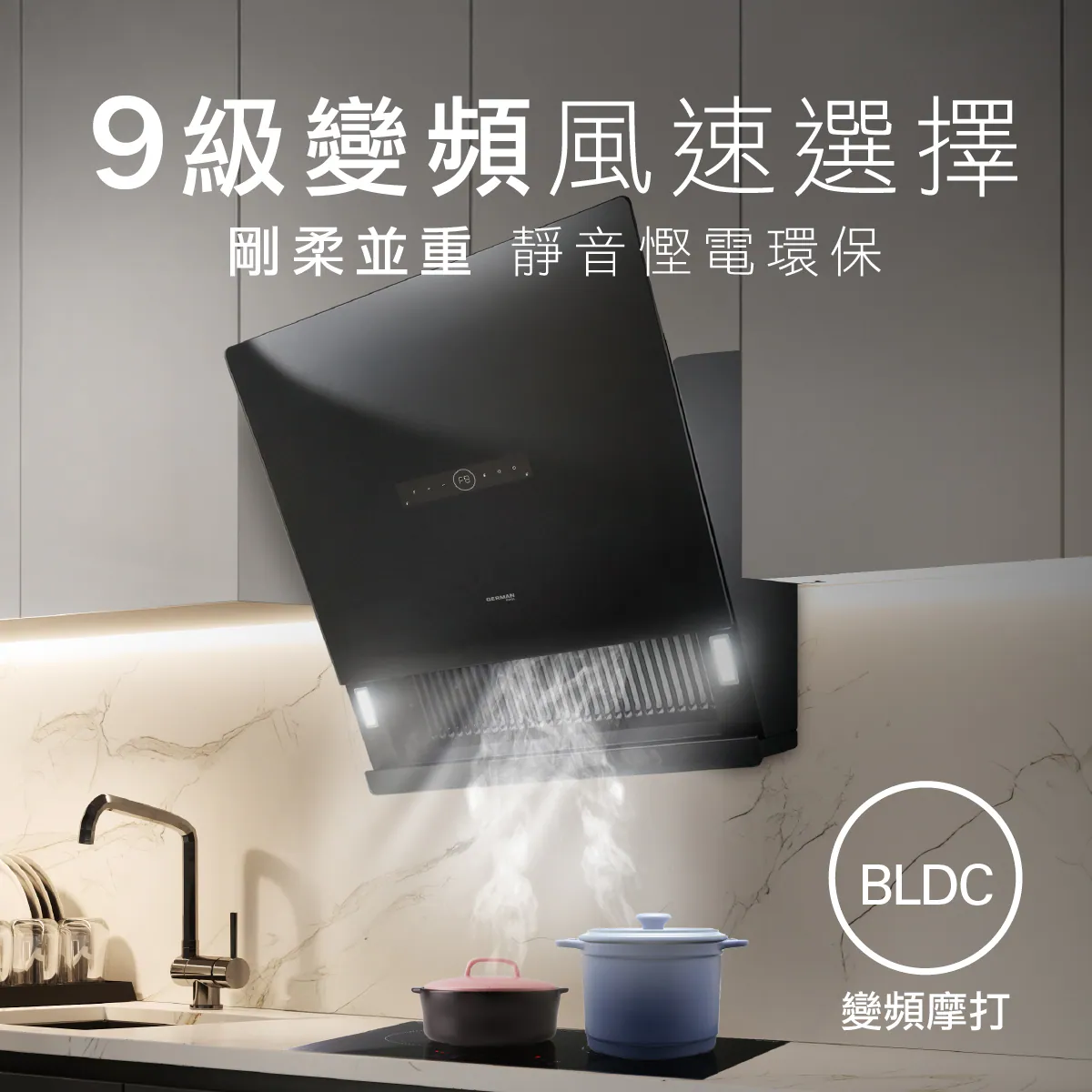 240W變頻數碼摩打及9級變頻風速選擇,包括「Turbo Boost」超頻模式,超勁、超靜,剛柔並重,全方位滿足您所有烹調需求;相比一般只有高低檔的抽油煙機,讓您更輕鬆控制抽風力度,真正高效又慳電。
