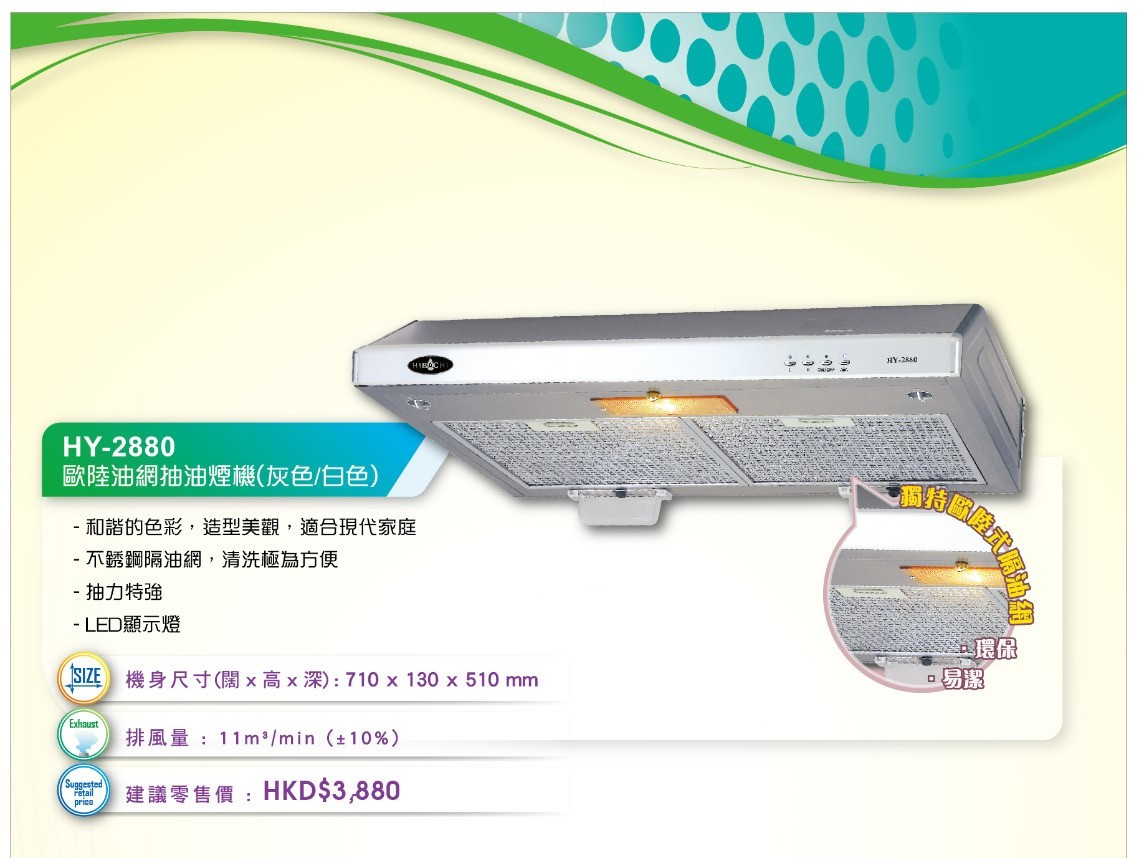 Hibachi HY-2880‧Detachable design Range hood‧Stainless steel Oil Net‧1-year limited warranty‧