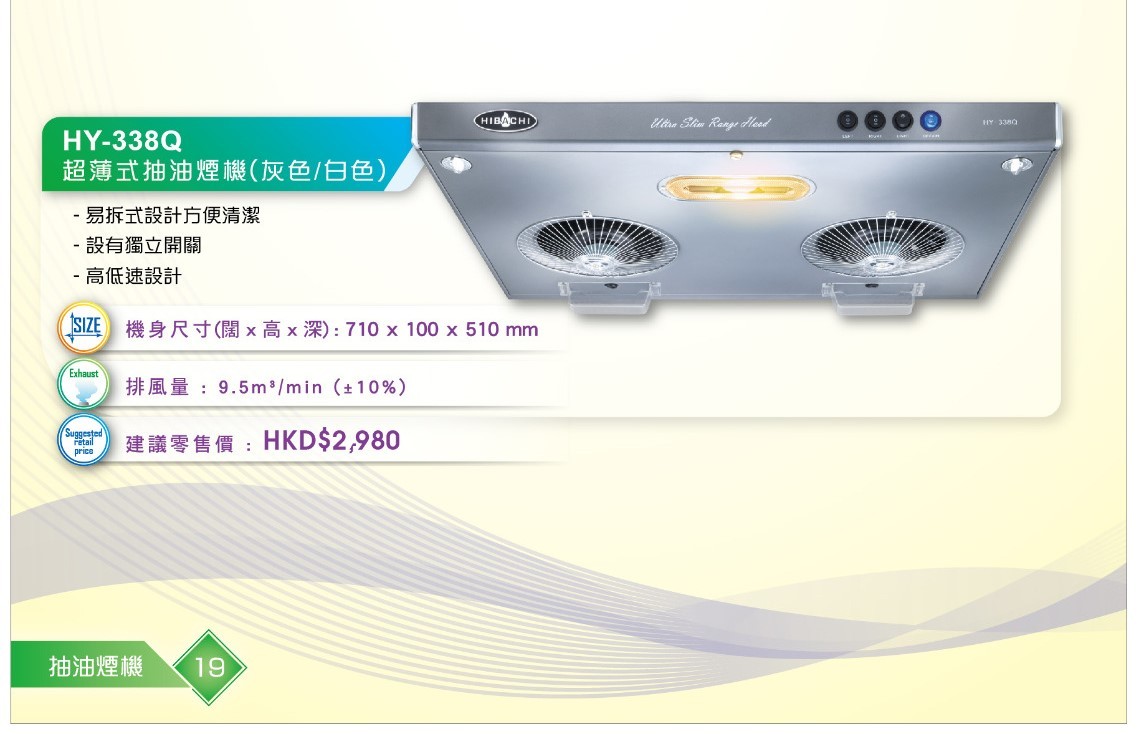 Hibachi HY-338Q ‧Ultra-thin design Range hood‧710mm‧1-year limited warranty‧