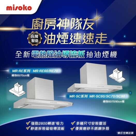 Misoko MR-RE60‧600mm 煙導式流線型圓角導流板抽油煙機‧電熱除油‧台灣製造‧香港行貨,原廠3年全機保養‧