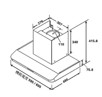機身尺寸 (寬x深x高):595 x 480 x 415.8 毫米 (H已包含機身厚度)