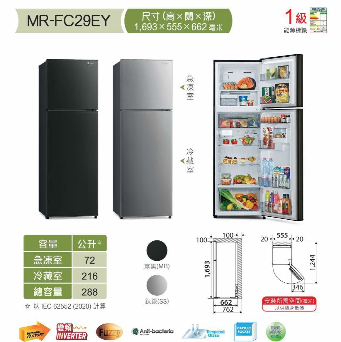 Mitsubishi Electric MR-FC29EY‧2-Door Inverter Compressor Refrigerator‧288L‧5-year limited warranty,compressor10-year‧