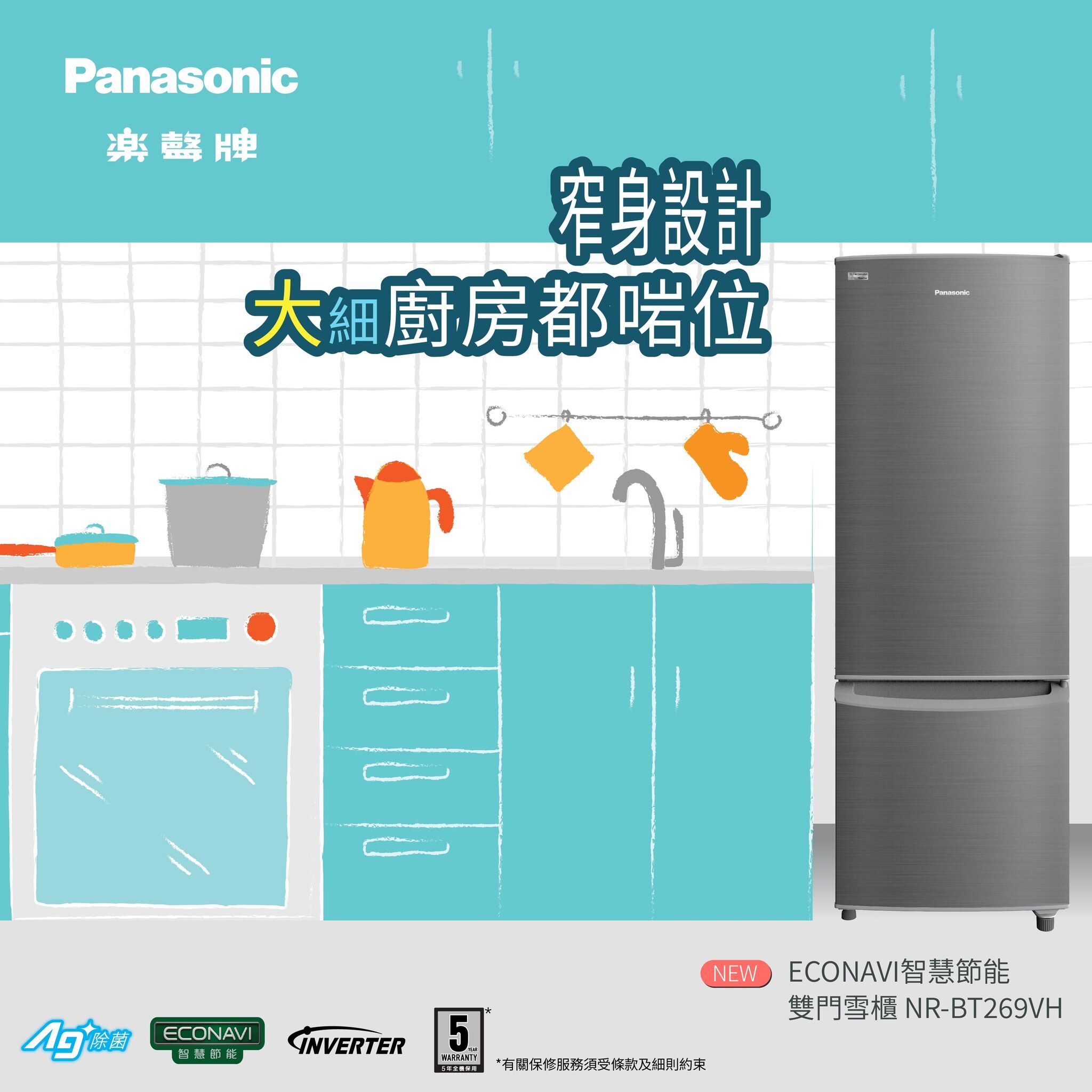 Panasonic NR-BT269VH‧ECONAVI 2-door Inverter Compressor Refrigerator‧221L‧5-year limited warranty‧