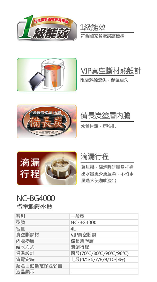 Panasonic NC-BG4000‧Electric Pump Thermo Pot‧4.0L‧1-year limited warranty‧
