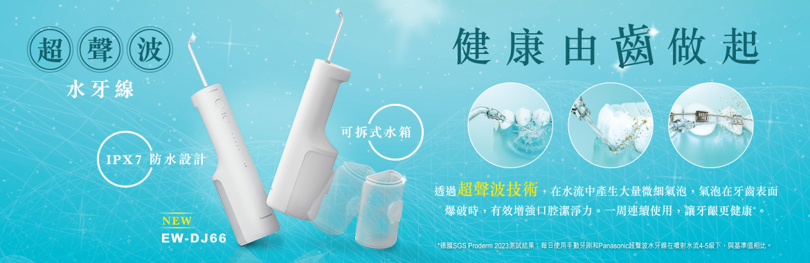 *1 德國SGS Proderm 2023測試結果: 每日使用手動牙刷和Panasonic 超聲波水牙線在4-5級下,與基準值相比,1週後牙床出血及牙齦指數有所改善。
