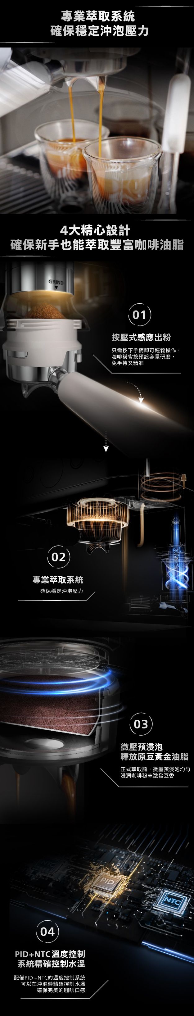 配備 PID +NTC 的溫度控制系統可以在沖泡時精確控制水溫,確保完美的咖啡口感。