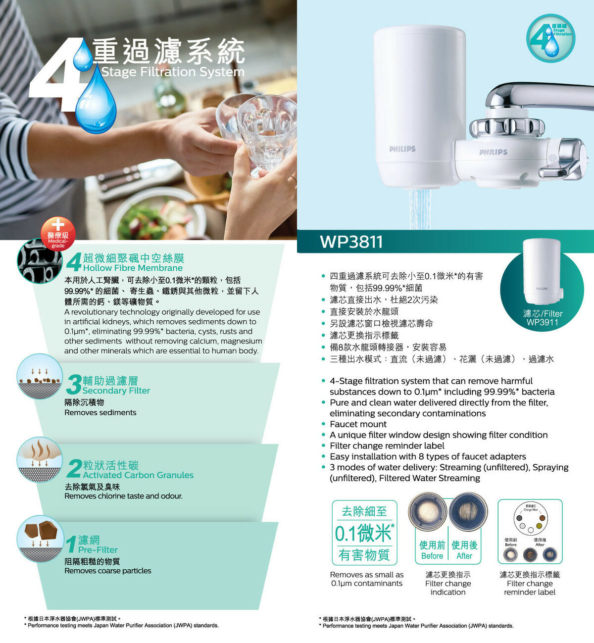 Micro Pure 濾芯是一套多功能過濾系統,可有效去除所有細菌、雜質和異味,為你帶來潔淨、安全和可口的飲用水。它包括一個高科技設計的超微細聚碸中空絲膜,包含超過 5200 億個微孔,有效清除 99.99% 的各類細菌,以及粒狀活性碳去除難聞氯氣、臭味和異味。該濾網還可保留飲用水中對人體健康十分重要的礦物質。
