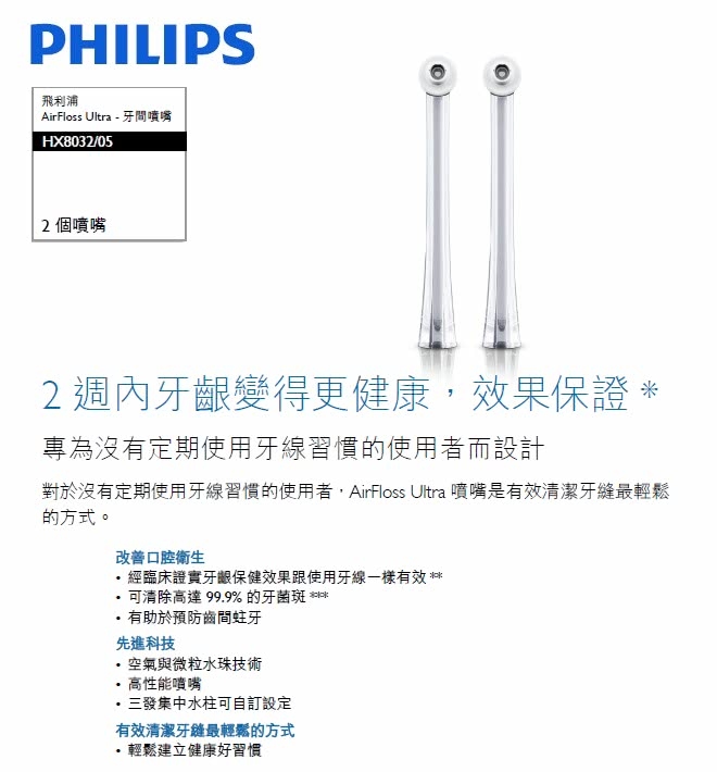 AirFloss Pro/Ultra 可針對經過護理的部位消滅牙菌膜達 99.9%。***