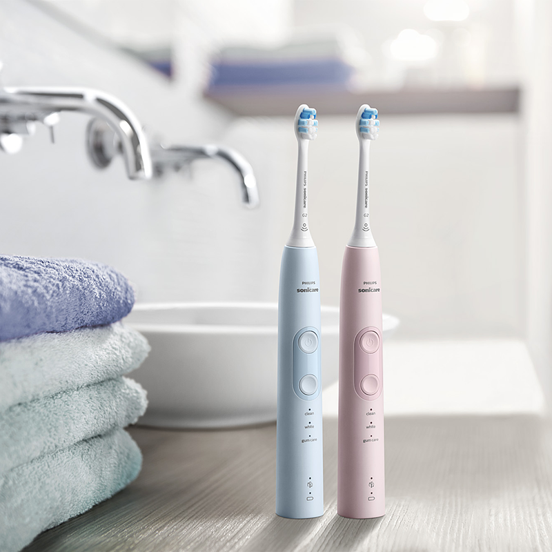 Philips Sonicare 進階聲波技術可以將水份推往牙縫,而刷毛震動則可有效去除牙菌膜,達致每日潔淨效果。