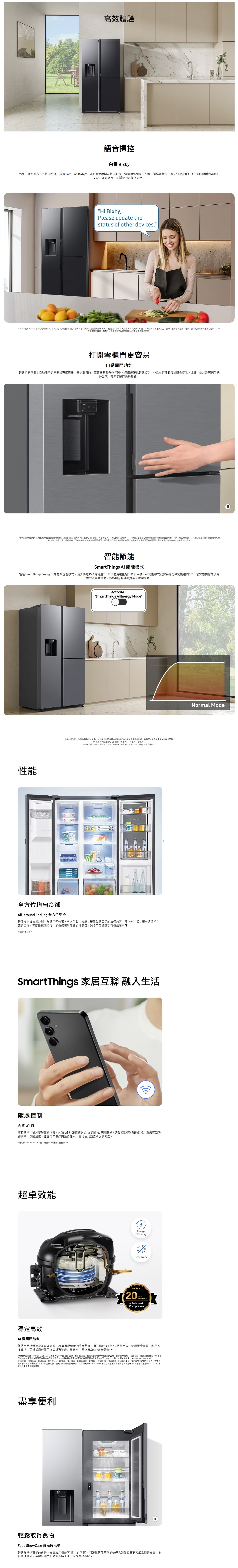 三星 Samsung RS80F65G1FSH‧智能變頻對門式雪櫃‧609L‧香港行貨,原廠3年保養,20年壓縮機保養‧