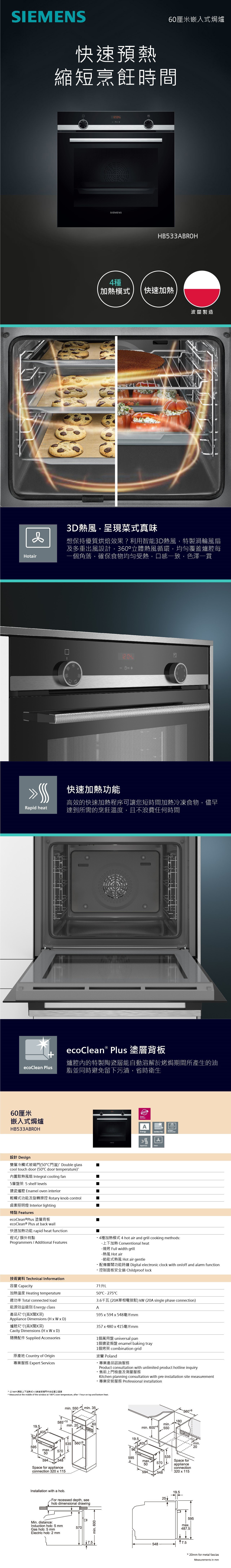 西門子 Siemens HB533ABR0H‧71L‧iQ300 嵌入式焗爐‧香港行貨,原廠2年保養‧