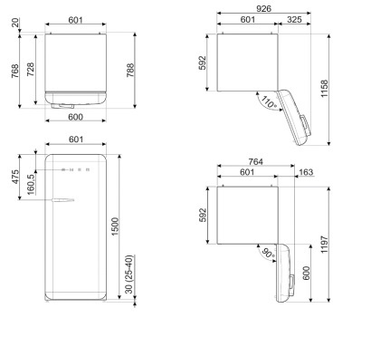 須預留163mm空隙在雪櫃門鉸側,以便打開雪櫃門