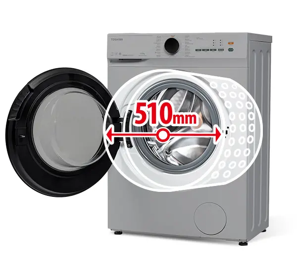 TOSHIBA洗衣機洗衣容量7公斤,配合升級510mm特大直徑滾筒,可以洗淨更多衣服,應付大家庭的需要。