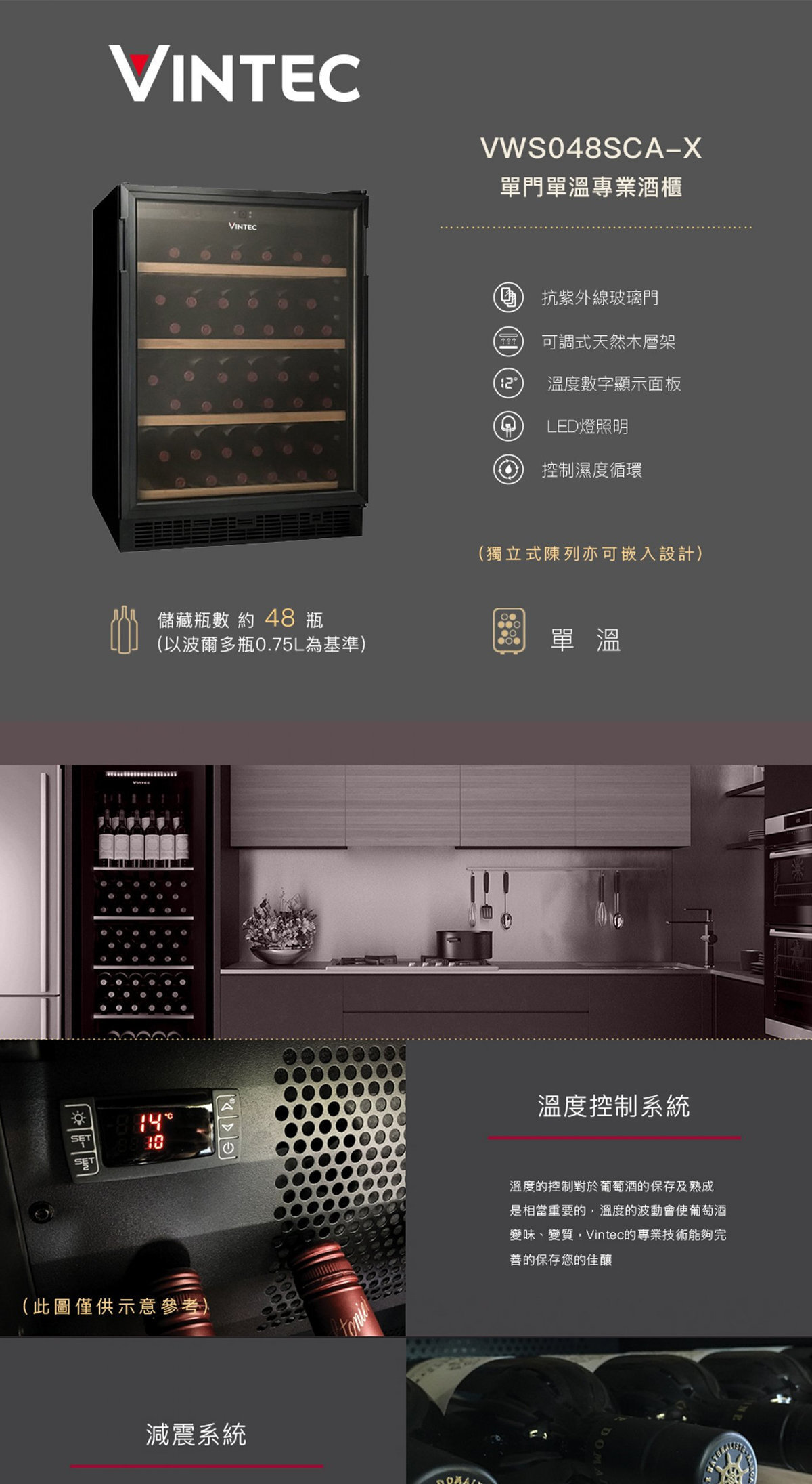 Vintec VWS048SCA-X‧單溫區紅酒櫃‧48支‧香港行貨,原廠1年保養‧
