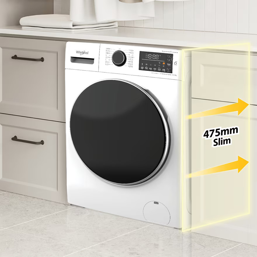 惠而浦 Whirlpool FWHB48502GW‧「第6感」Supreme Oxycare 變頻蒸氣‧纖薄前置式洗衣機‧8.5公斤/1400轉‧香港行貨,原廠2年全機及10年摩打保養‧