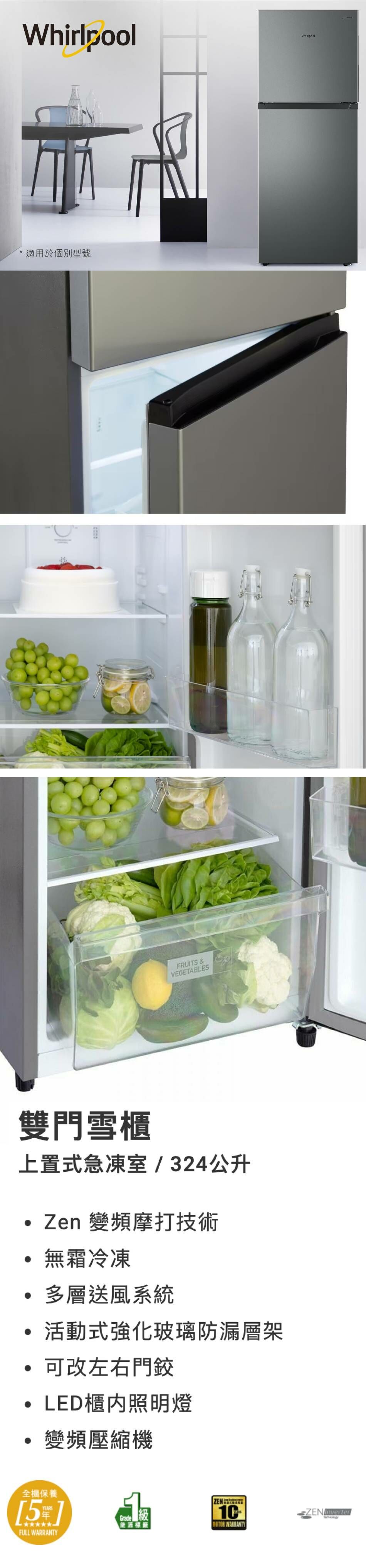 惠而浦 Whirlpool WF2T203‧變頻雙門上置式冰箱雪櫃‧203公升‧香港行貨,原廠5年全機,10年壓縮機保養‧