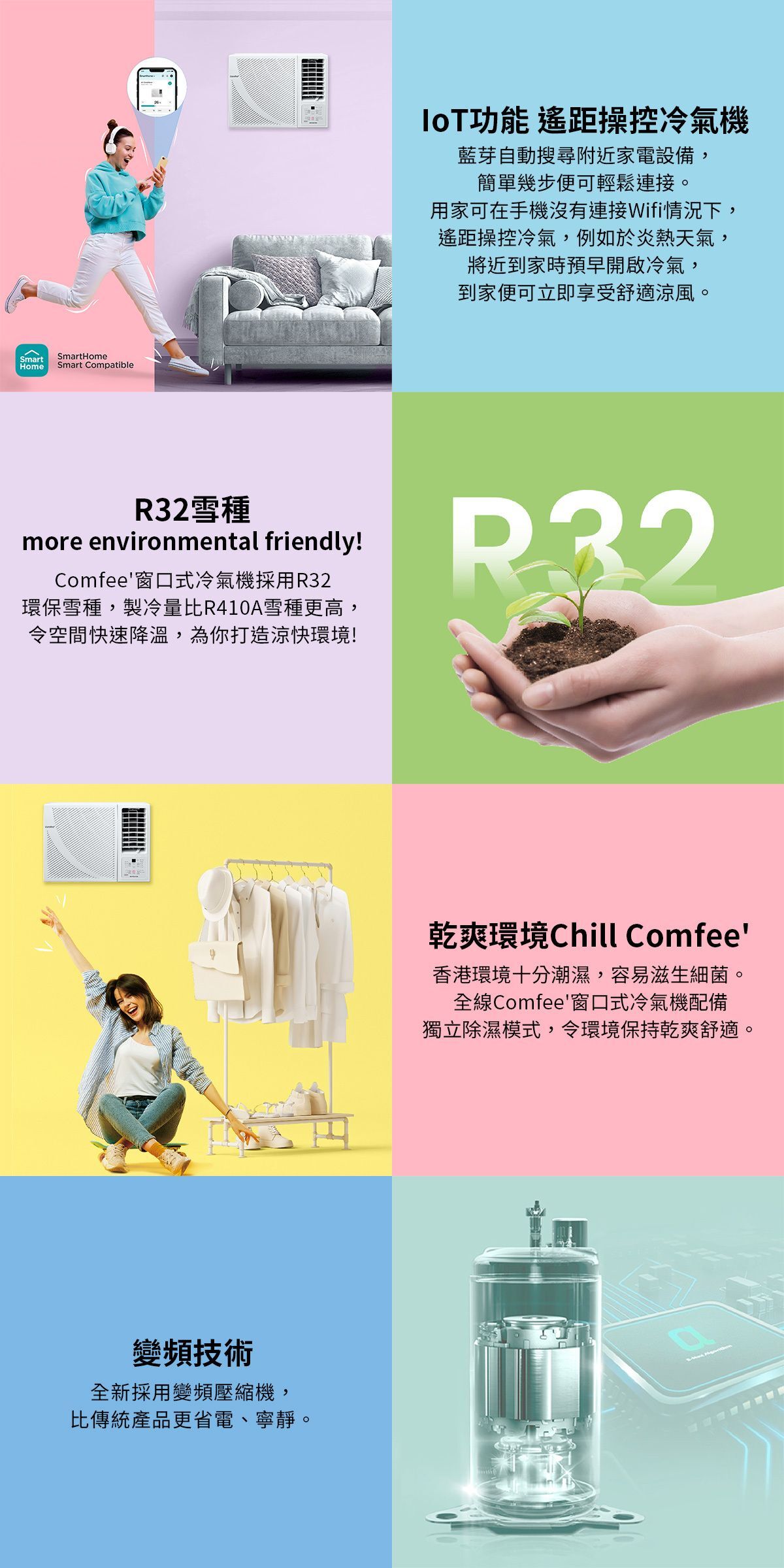東芝 Comfee CWF-09CRFN8-AD5‧1匹 R32智能變頻淨冷‧無線搖控‧窗口式冷氣機‧‧香港行貨,東芝3年全機,5年壓縮機保養‧