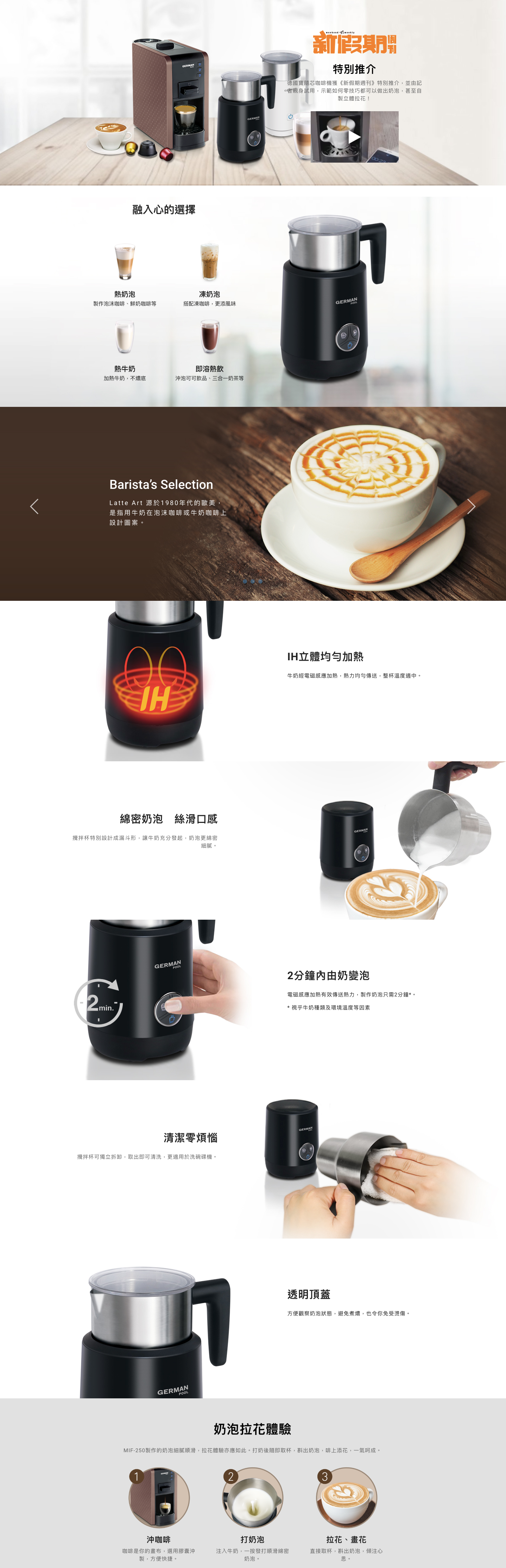 德國寶 German Pool MIF-255‧4合1 IH電磁加熱‧電動奶泡機‧250ML‧香港行貨,原廠1年保養‧