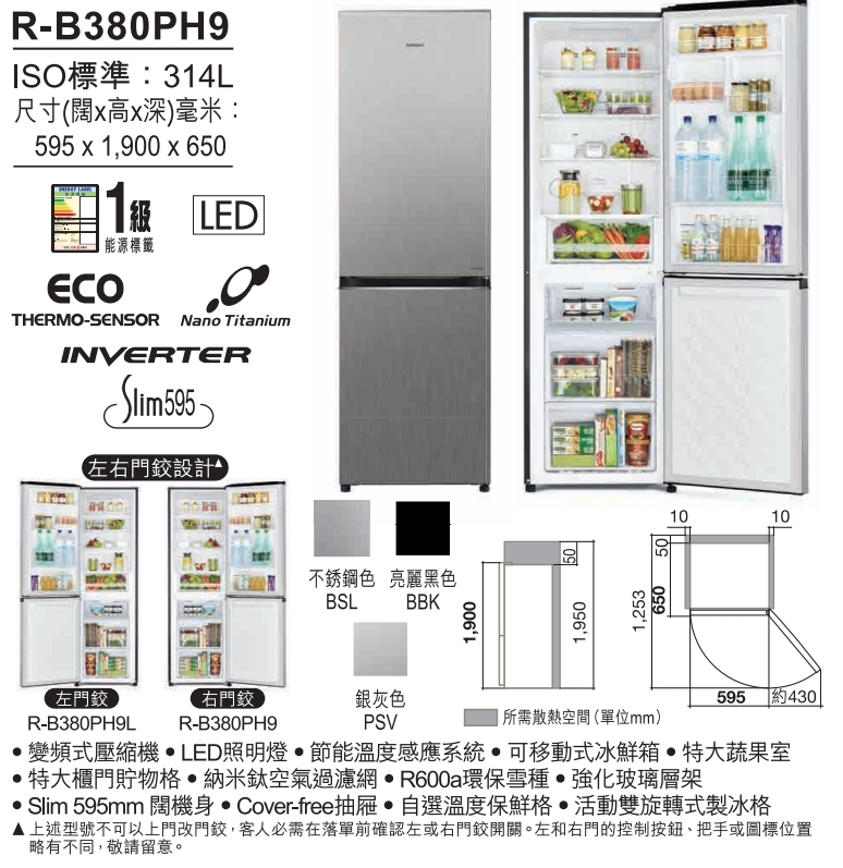595(闊) x 1,900 (高) x 650 (深) 毫米