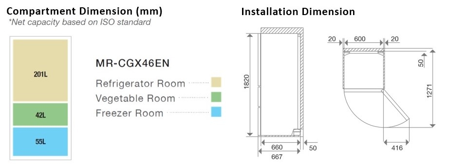 三菱電機 Mitsubishi Electric MR-CGX46EN‧變頻三門雪櫃‧298公升‧泰國製造‧香港行貨,原廠5年全機,10年壓縮機保養‧