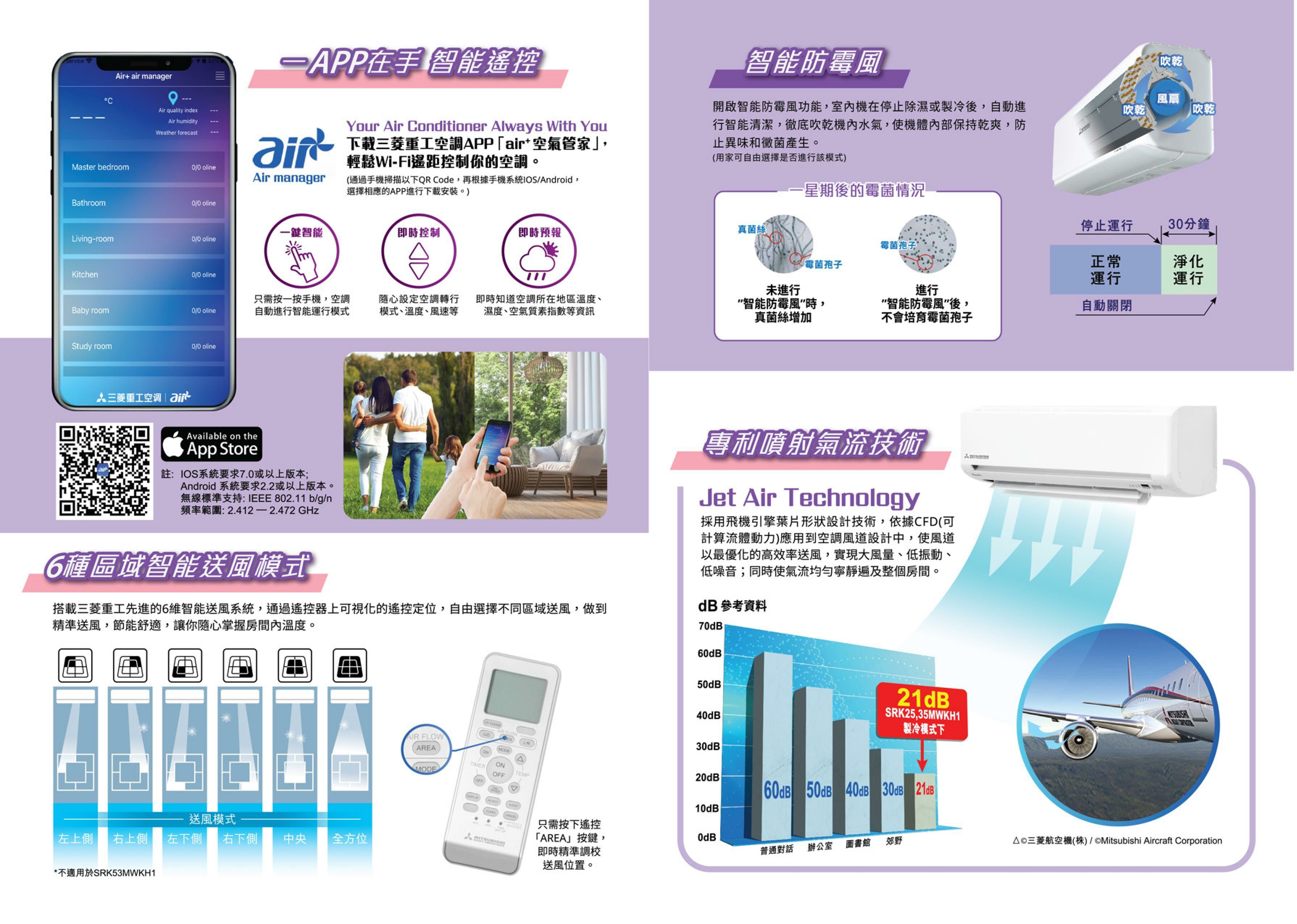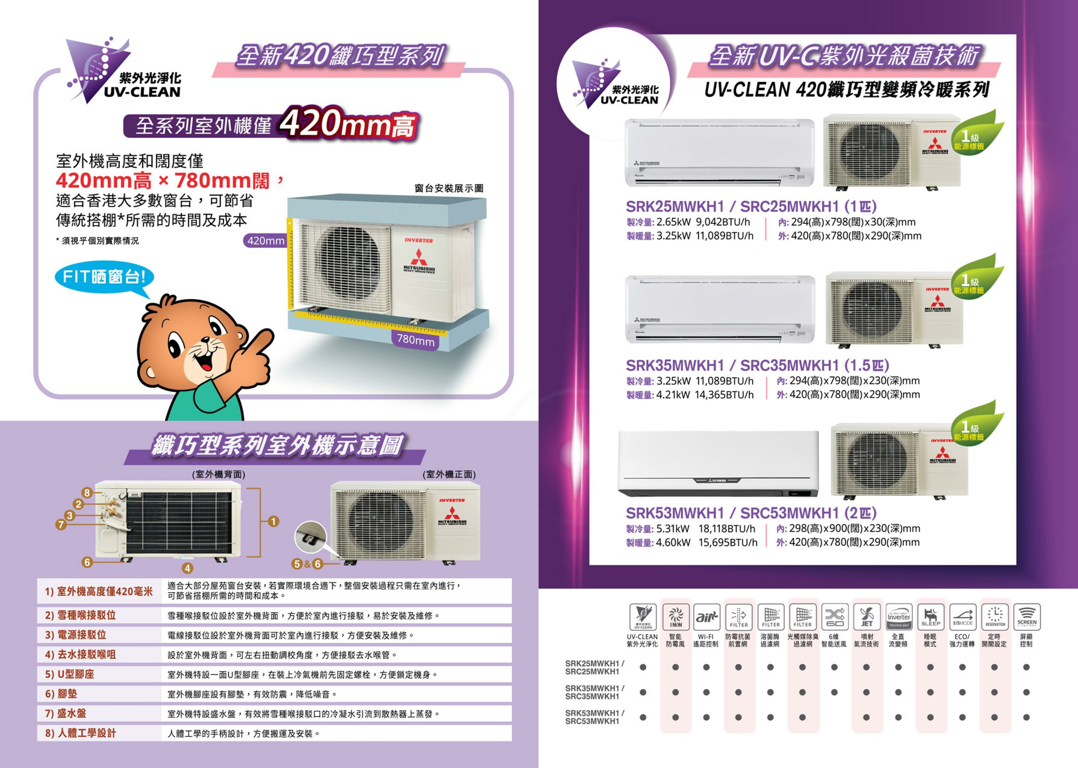 三菱重工 Mitsubishi Heavy SRK35MWKH1/SRC35MWKH1‧1.5匹 R410A 變頻冷暖‧纖巧型 420mm Wifi UV-C‧分體式冷氣機‧香港行貨,原廠3年全機保養‧