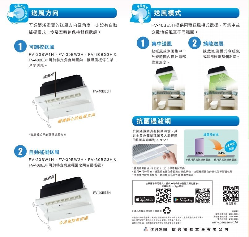 樂聲 Panansonic FV-30BG3H‧天花式浴室寶‧纖巧型‧1650W‧無線遙控‧香港行貨,原廠1年保養‧