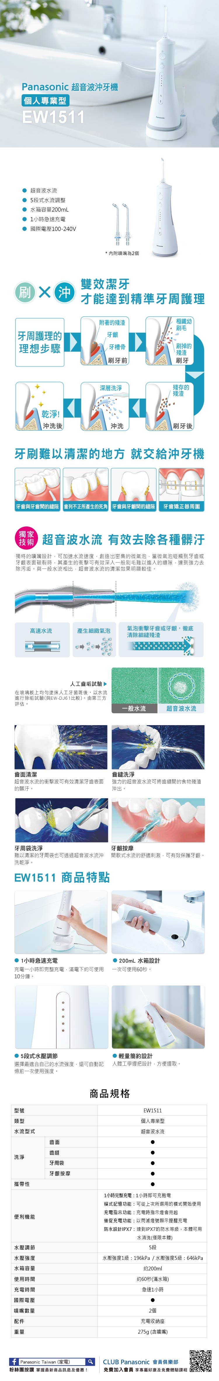 樂聲 Panasonic EW-1513‧充電式水牙線‧香港行貨,原廠1年保養‧