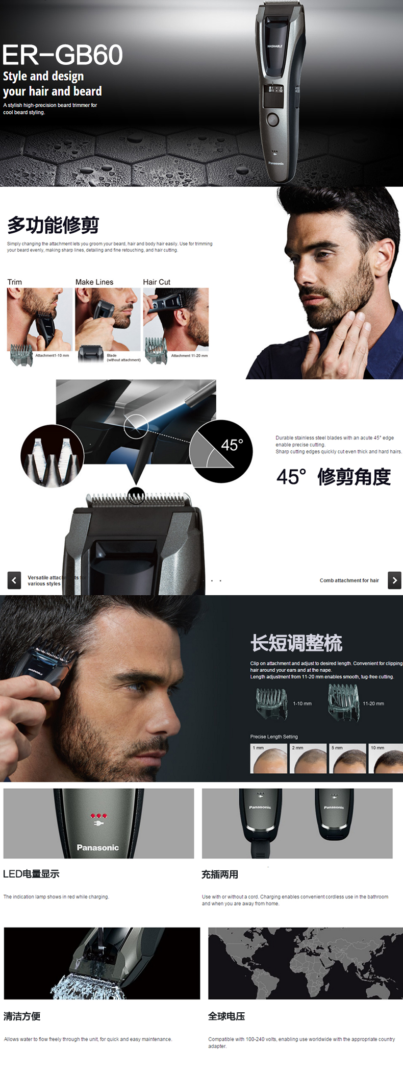 樂聲 Panasonic ER-GB60‧理髮器‧可修剪鬍鬚‧1-20毫米‧香港行貨,原廠1年保養‧