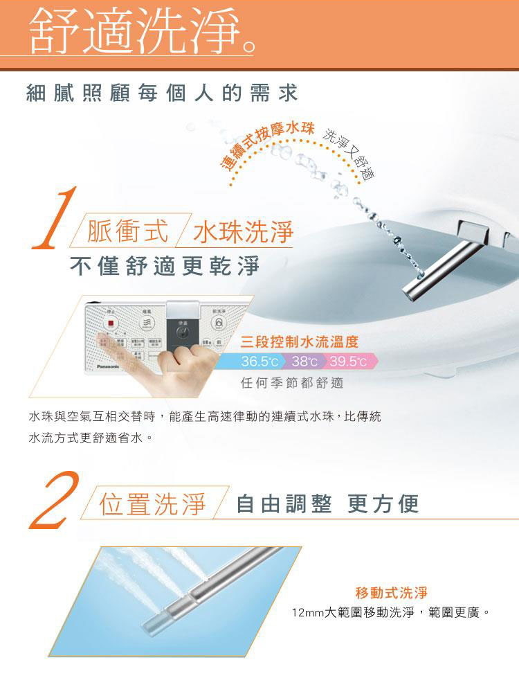 • 不銹鋼噴咀 (分臀部洗淨及女性專用噴頭),清潔衛生