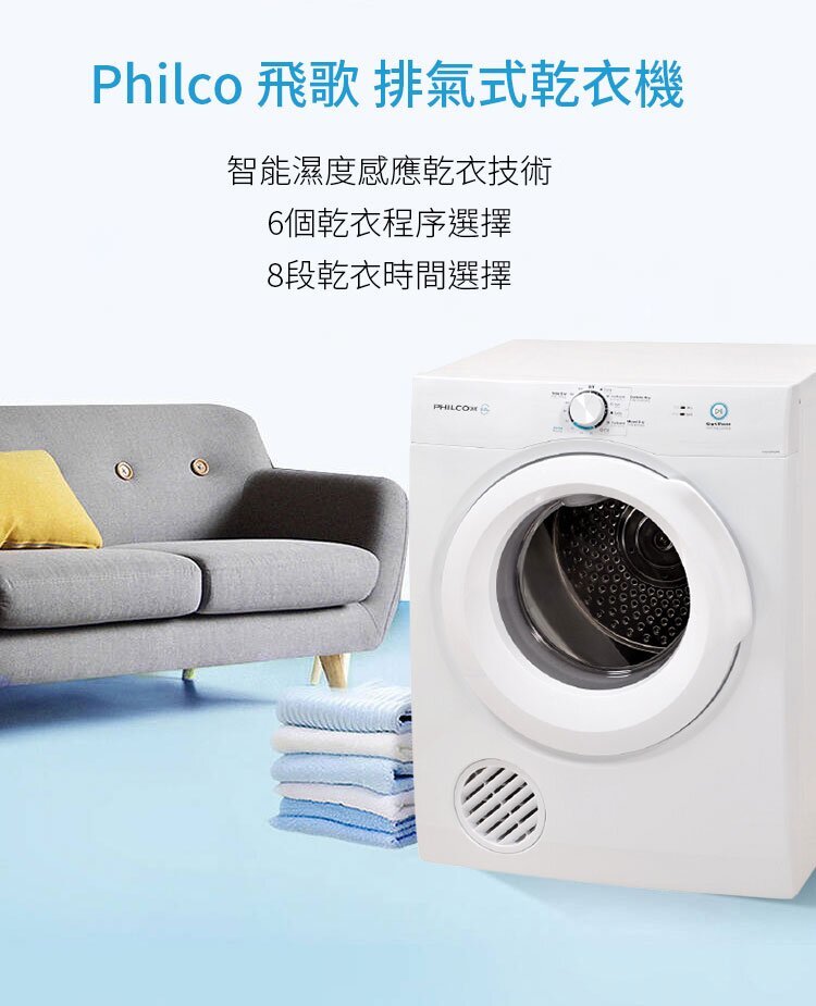 飛歌 Philco PDV556N3WB‧排氣式‧乾衣機‧5.5公斤‧泰國製造‧香港行貨,原廠1年保養‧