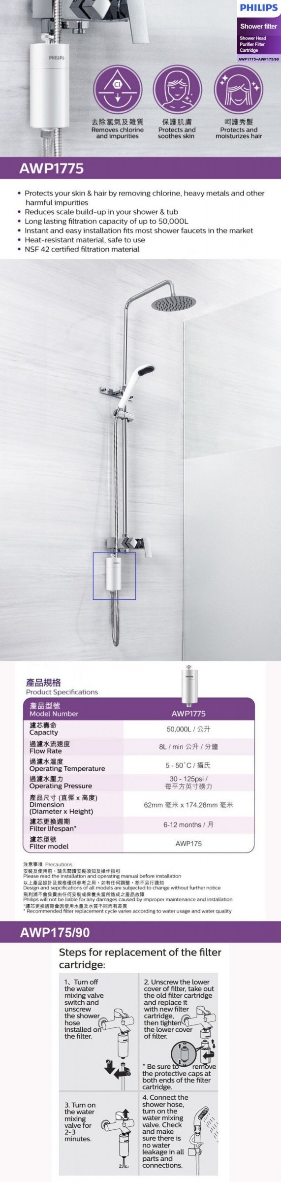 這款濾芯採用經 NSF 認證的 KDF 濾材製成,可去除殘留氯氣和雜質,包括鐵銹和沉澱物;讓您享用潔淨清水,淋浴更為舒爽。