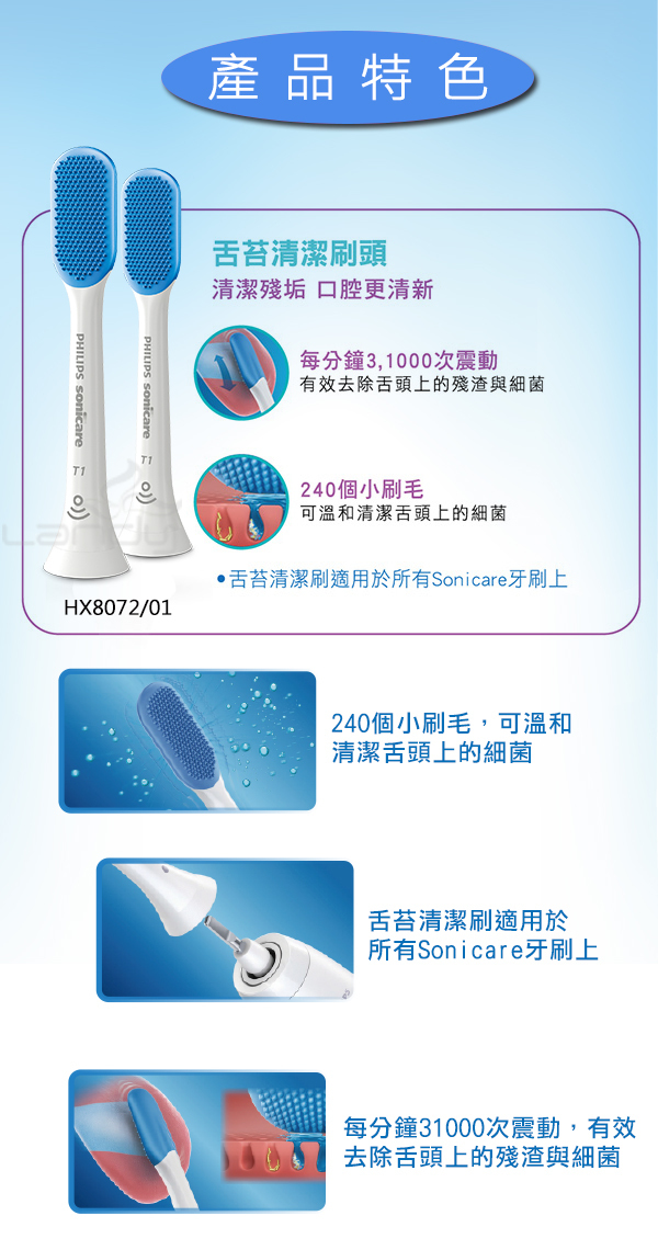 全部商品 / 飛利浦 Philips HX8072‧2支裝‧Sonicare TongueCare + 智能舌頭刷‧香港行貨‧