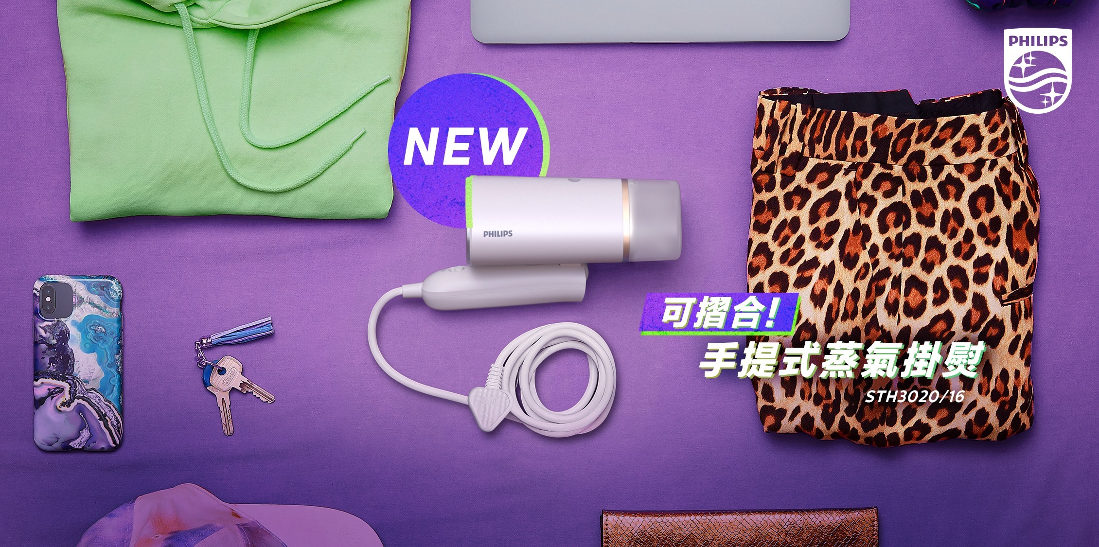 手提式蒸氣掛熨機 3000 系列設計小巧可摺疊,方便使用和儲存,能隨時隨地將衣服打理整齊。無論在家還是出外旅行,這款手提式蒸氣掛熨機都是您的理想拍檔,讓您輕鬆快速整理衣服。