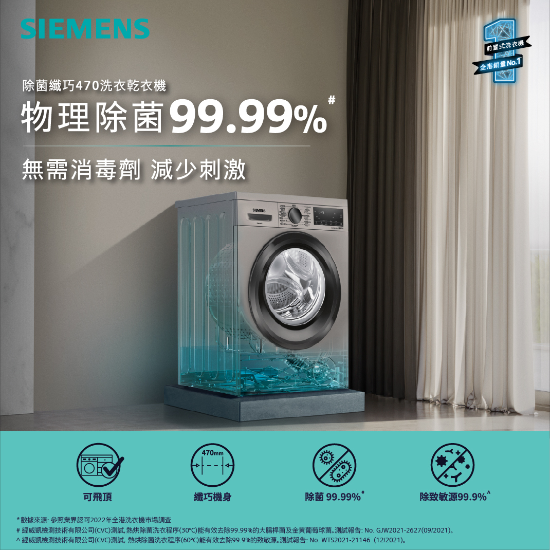 西門子 Siemens WD14S4B5BU(820mm高)‧變頻2合1‧前置式洗衣乾衣機‧8/5公斤,1400轉‧香港行貨,原廠2年全機,10年摩打保養‧