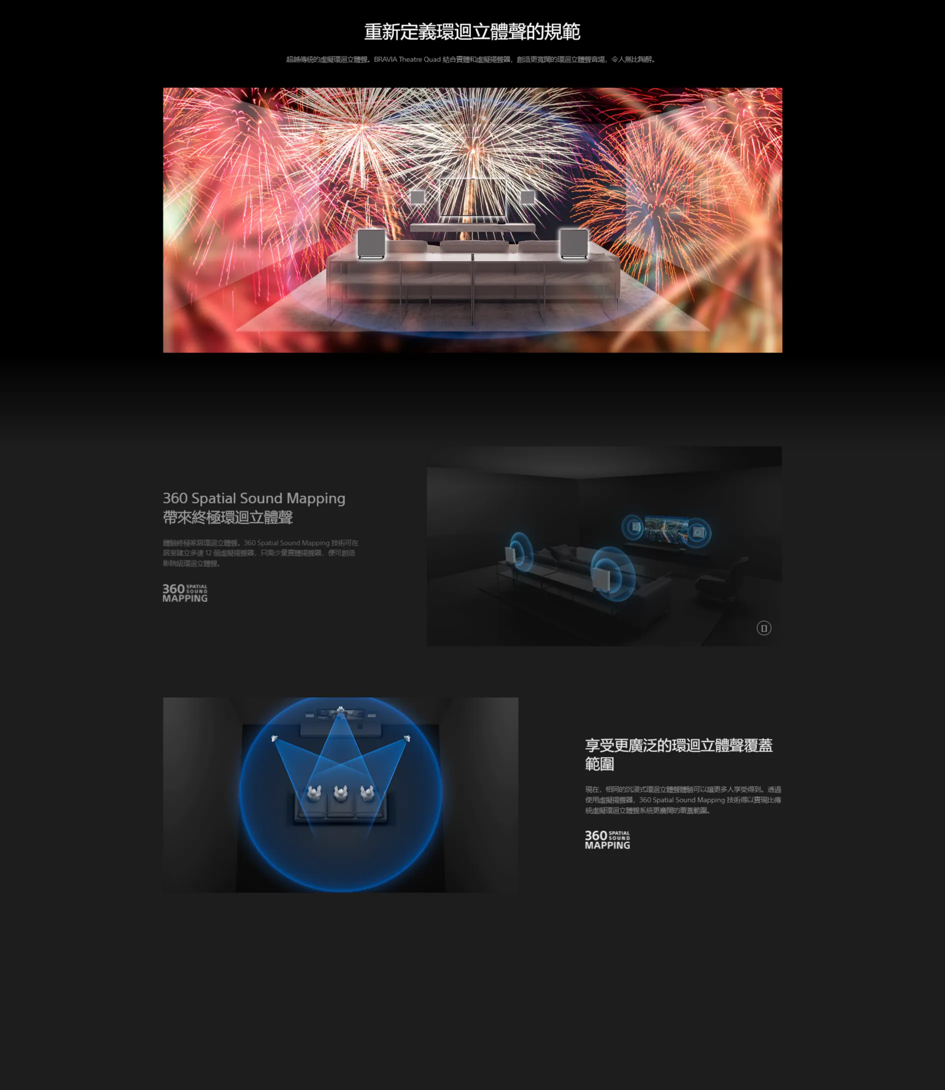 超越傳統的虛擬環迴立體聲。BRAVIA Theatre Quad 結合實體和虛擬揚聲器,創造更寬闊的環迴立體聲音場,令人無比陶醉。