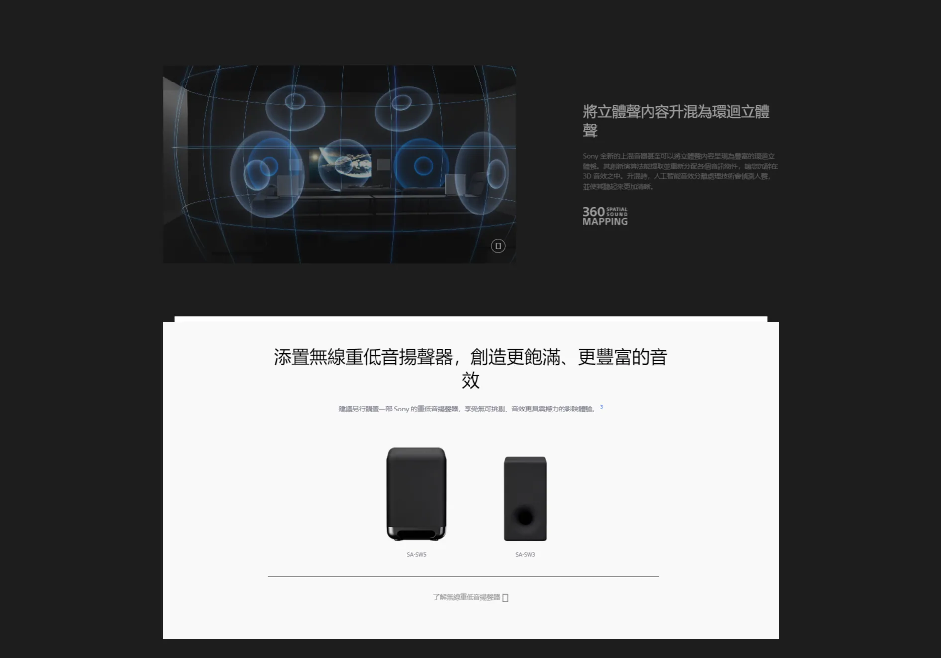 建議另行購置一部 Sony 的重低音揚聲器,享受無可挑剔、音效更具震撼力的影院體驗
