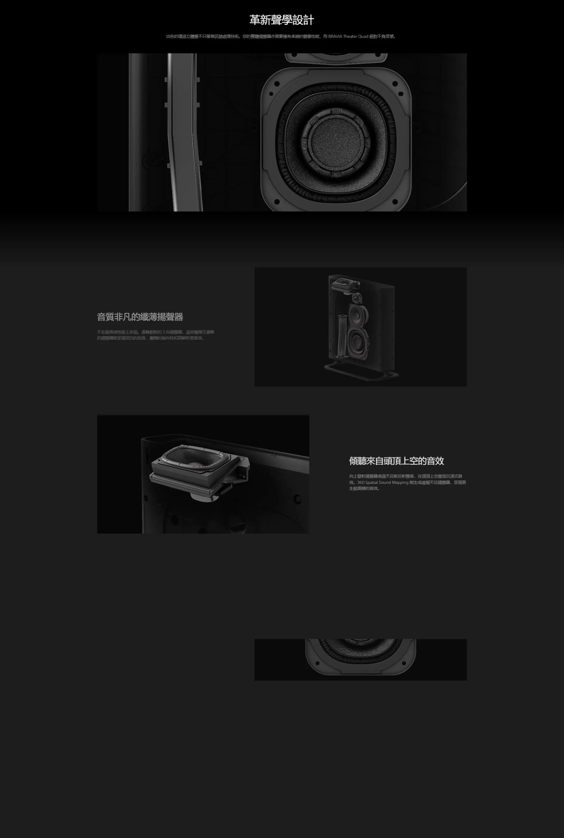 出色的環迴立體聲不只單靠訊號處理技術。您的實體揚聲器亦需要擁有卓越的聲學性能,而 BRAVIA Theater Quad 絕對不負眾望。