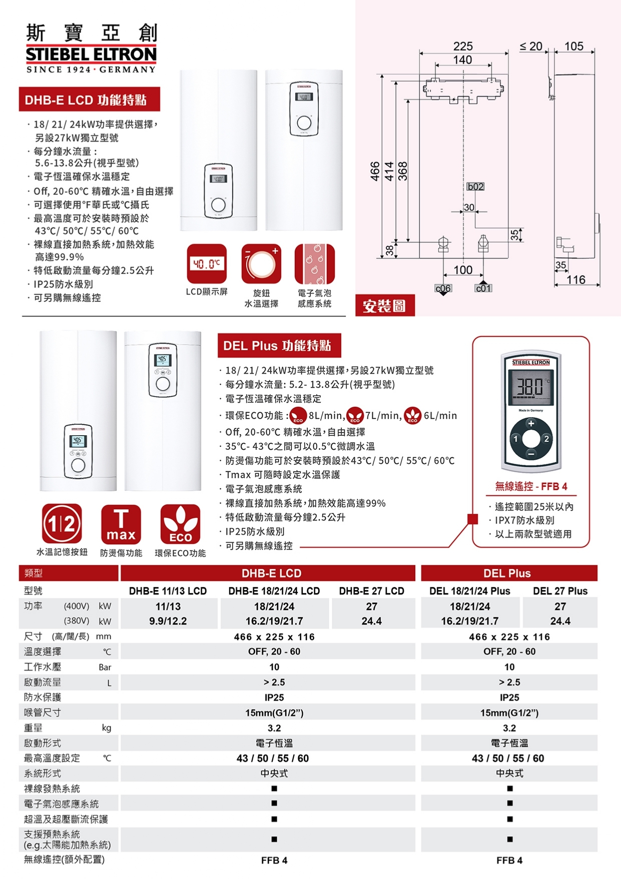 斯寶亞創 Stiebel Eltron DHB-E27 LCD‧即熱式電熱水器‧電子恆溫‧三相電源‧德國製造‧香港行貨,原廠2年保養‧