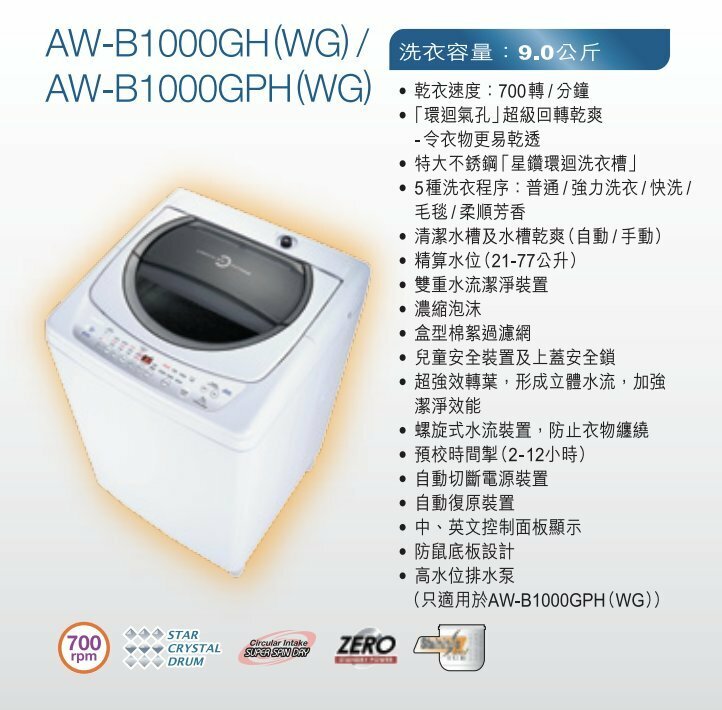 | 耗電量 (瓦) | 470 (洗滌) / 540 (脫水) |